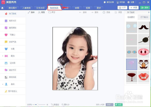 总结:先打开美图秀秀软件,载入需要的图片,然后在贴纸饰品菜单中添加需要的贴纸饰品类型。