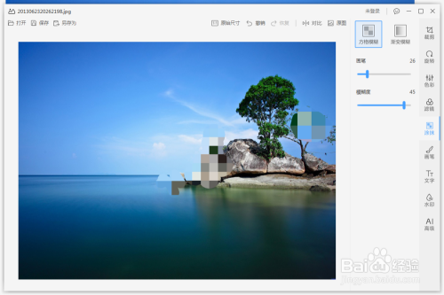 操纵鼠标选择右上角的方格恍惚,然后再屏幕上会呈现一个小圆,操纵它将我们需要打马赛克的处所点击就可以了。
