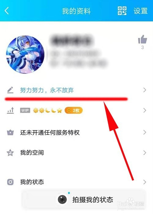 页面跳转,细心不雅察我的资料,点击箭头处的个性签名。
