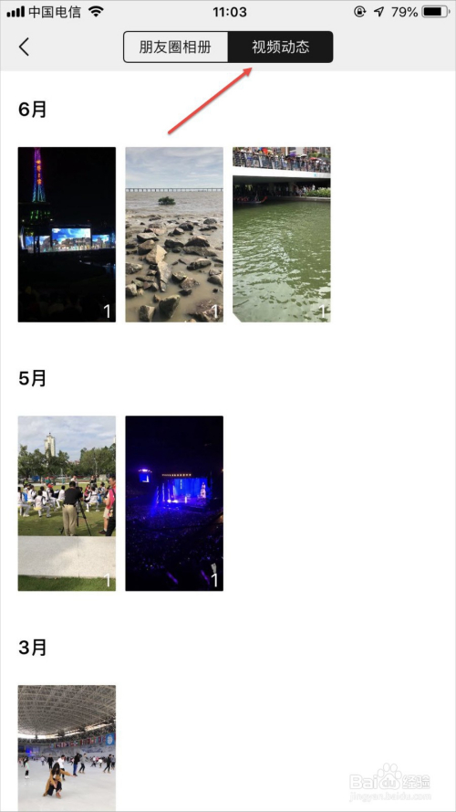 在这里,我们往下拉,即可完整地查看方才拍摄的视频动态。右上角会显示拍摄的时候。