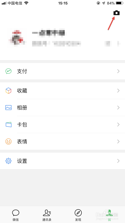 在微信“我”的界面,在右上方可以看到一个拍照机外形的图标,这个时辰点击该图标。