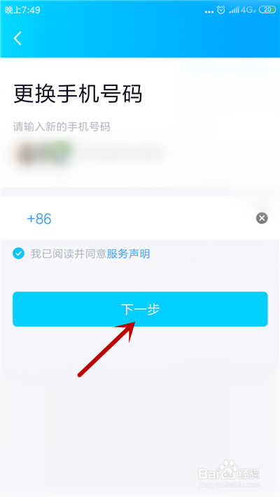 输入要改换的手机号,点击【下一步】。