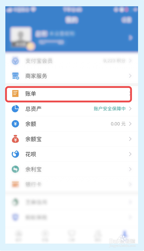 在【我的】界面,选择并点击【账单】选项。