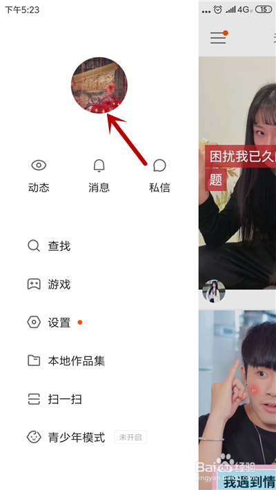 在更多界面里,点击我们的快手头像。
