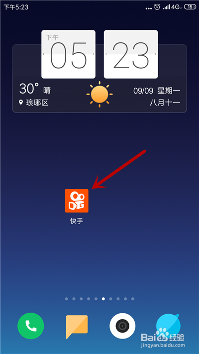 打开手机,在桌面上打开快手应用。