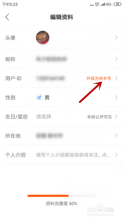 找到【用户ID】,点击后方【进级为快手号】。