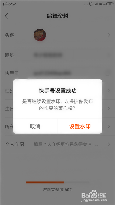 此时,即可看到【快手号设置当作功】。