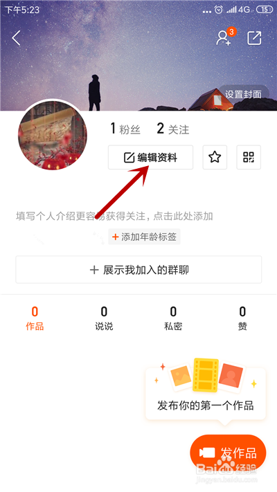 接着,在小我本家儿页,点击【编纂资料】。