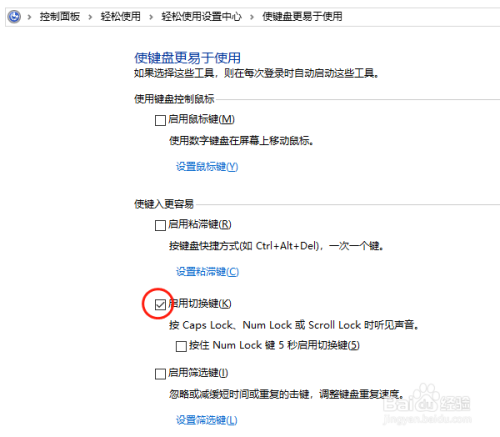 将“启用切换键”前面的√去失落;