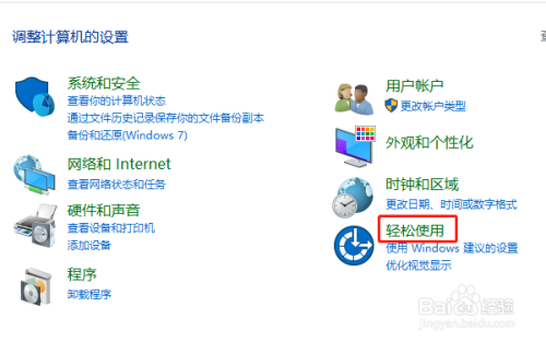 打开节制面板今后,点击“轻松利用”;