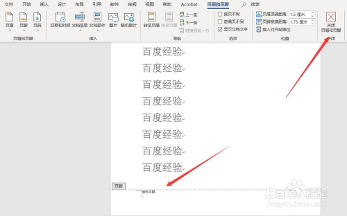 在之后,经由过程点击菜单栏中的”封闭页眉和页脚”按钮,就可以退出页眉的编纂