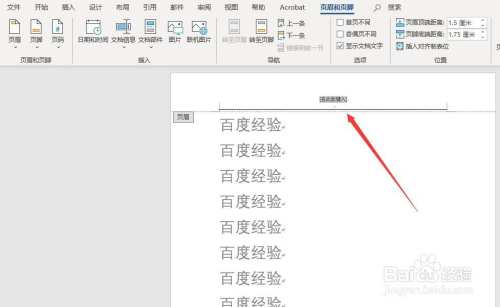 之后,我们要对页眉点窜,就点击”页眉页脚“里的”页眉“,点击后会呈现页眉的编纂框,在编纂框中进行页眉的编纂