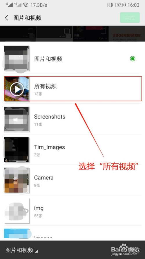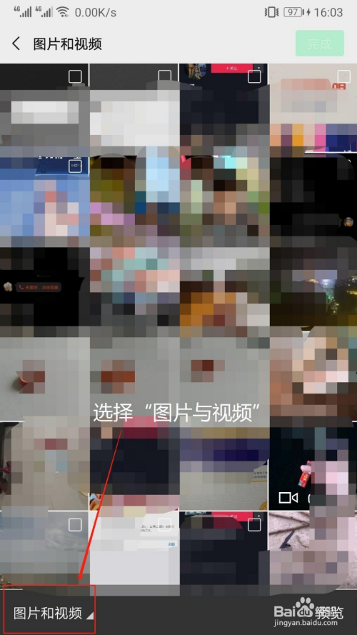 此时会呈现“图片与视频”界面,因为我们这里要上传的是视频,为了便利操作,我们选择左下角的“图片和视频”,如图所示: