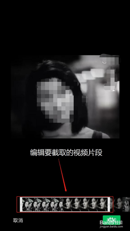 在视频编纂中,我们要注重的是微信朋友圈只许可上传最多15秒的视频,若是您的视频时候长的话,是需要截取的,我这里上传的是一个50秒的,所以需要进行截取,拖动下方的白框来进行截取,如图所示: