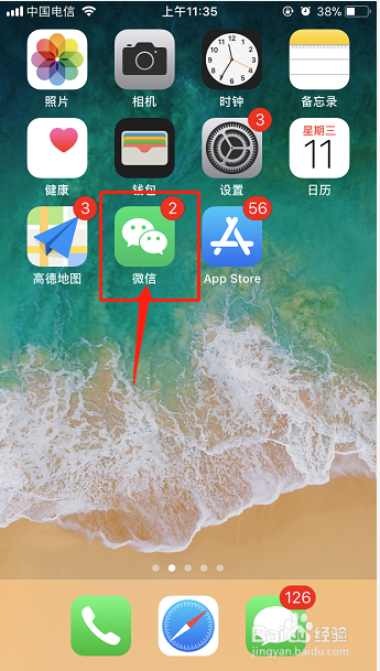 5、返回本家儿屏幕点击微信进入找到老友聊天界面;
