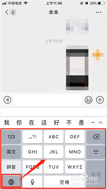 6、点击下方的聊天窗口,在左下角找到地球图标,按照本身的需要点击切换输入法。
