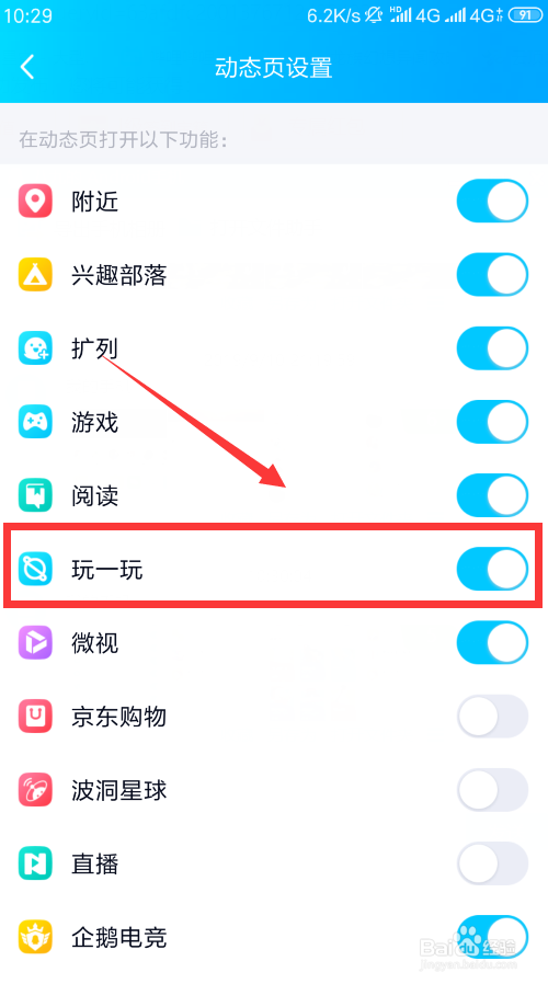 第二步,然后大师来到动态,点击右上角的设置,将我们的小程序的玩一玩打开。如下图所示。