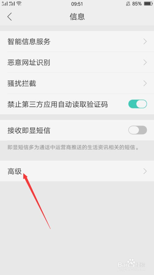 进入高级界面后,点击彩信栏的主动下载,如图。