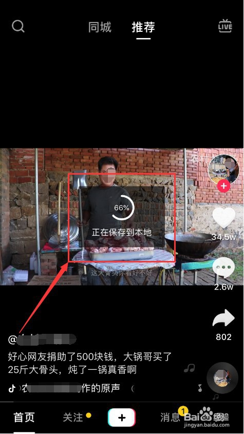 首先,打开并登录抖音短视频之后,进入抖音的视频播放列表,找到想要发送到朋友圈的视频,点击右下角的“分享”按钮,如图所示。