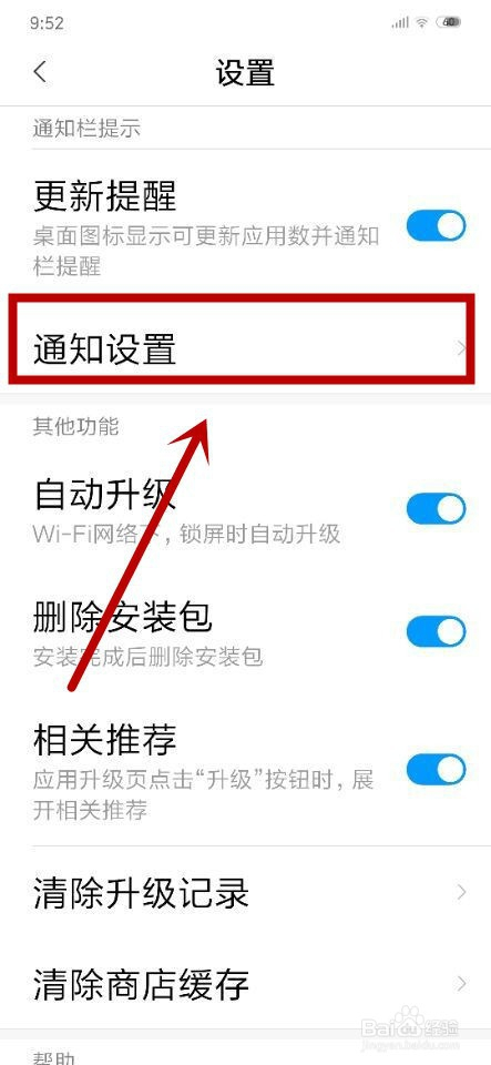 进入“应用商铺”页面,看到“推送动静”呈现打开状况,单击封闭该功能