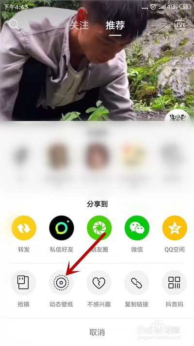 第三步,打开转发界面后,点击“动态壁纸”选项。
