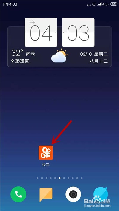 进入手机桌面后,打开快手应用,如图所示。