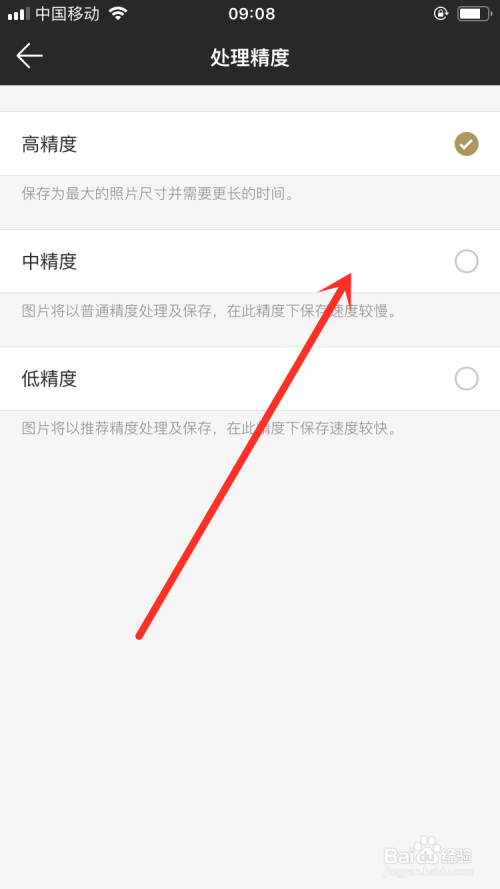然后打开处置精度的界面选项中有三个精度模式,好比选择“中精度”选项。