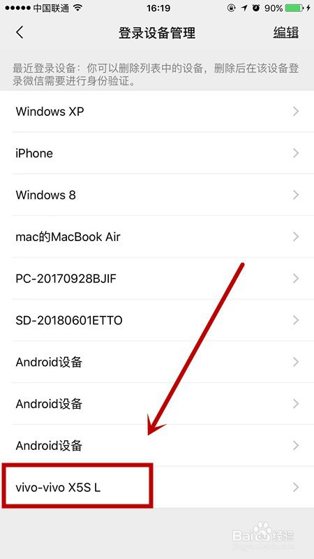 在登录设备办理页面,下滑找到最下方的那个登录设备并点击进去。