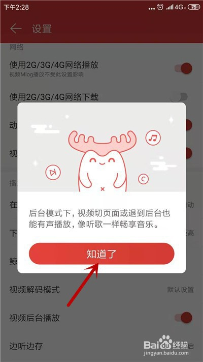 然后,找到【视频后台播放】并打开。