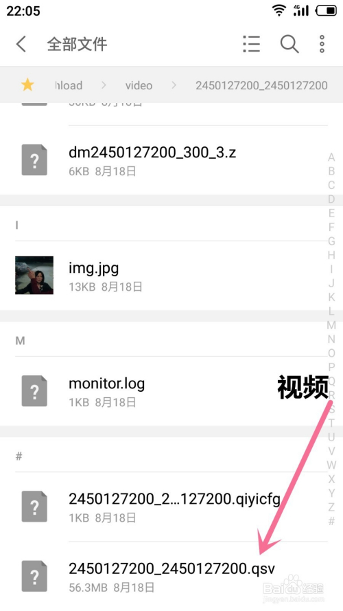 3.因为一路都是打开文件夹,所以我直接写出路径吧:手机储存器--Android--data--com.qiyi.video--files--apk--download--video--视频数字文件夹--达到目标地。