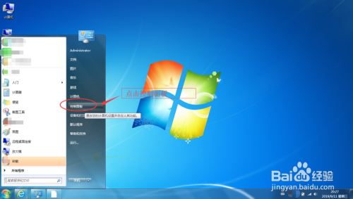 在windows窗口选择并单击节制面板。