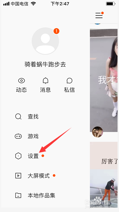 进入小我界面后,点击设置选项,如图。
