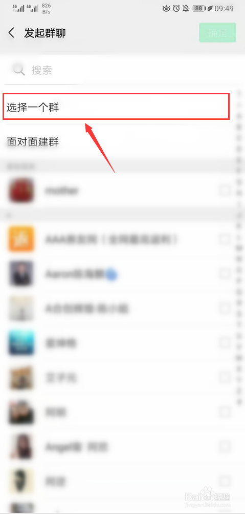 进入了【倡议群聊】页面,点击页面中上部的【选择一个群】选项,进入选择群的列表中