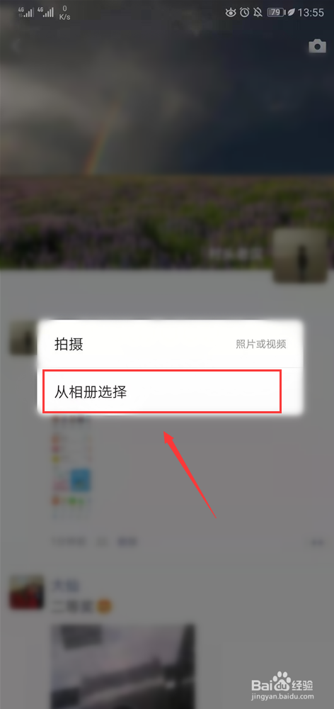 点击了【拍照】图标后,会提醒【拍摄】仍是【从相册选择】,这里选择第二个,目标是为了选择适才编纂的图片