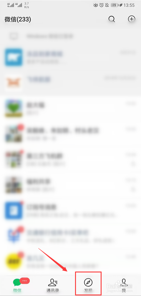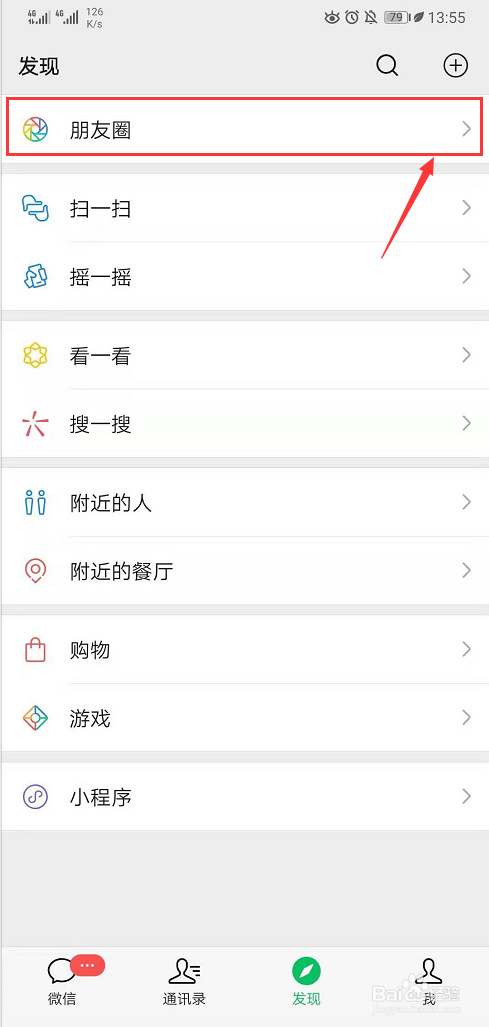 进入微信app本家儿页后点击屏幕下方的【发现】选项,进入发现的具体页面