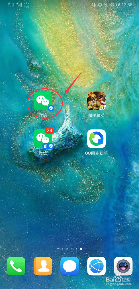 进入手机本家儿页,定位并打开【微信】app,进入微信app本家儿页面