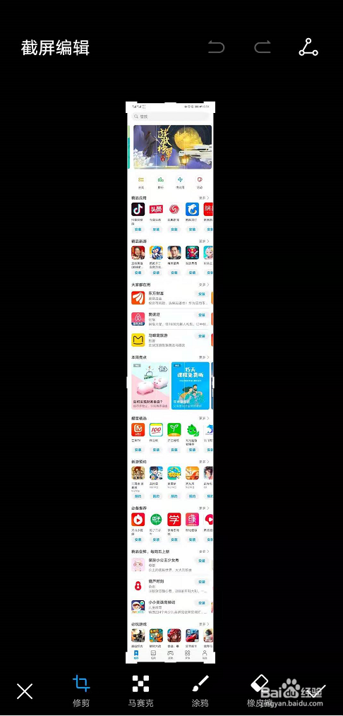 这里利用的是华为手机,首先在屏幕上利用指节画S型,进行长图截取,然后点击编纂,并保留到当地