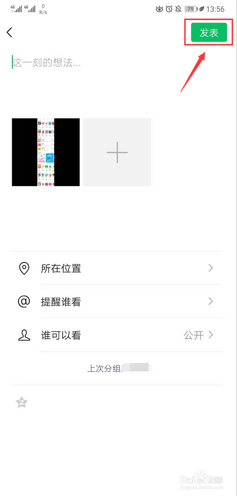 在进入朋友圈编纂的页面后,选中需要的长图,然后输入【这一刻的设法】,再点击【颁发】按钮即可