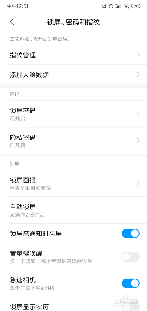 若是没有设置密码或者解锁图案,会直接进入,我们可以在设置——锁屏/密码中点开;