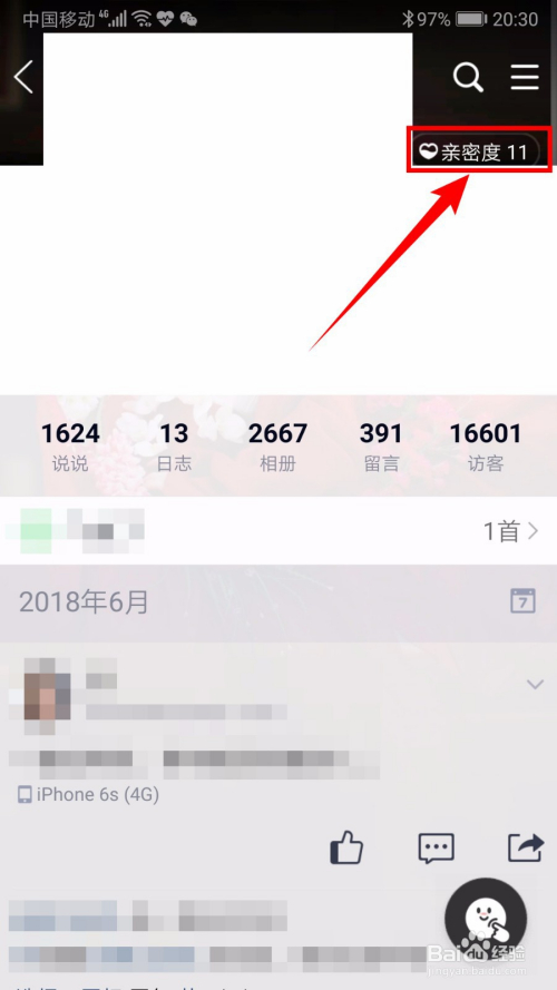 在TA的QQ空间里,点击上方的【亲密度】。