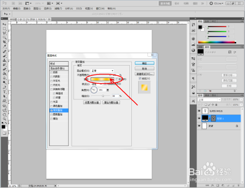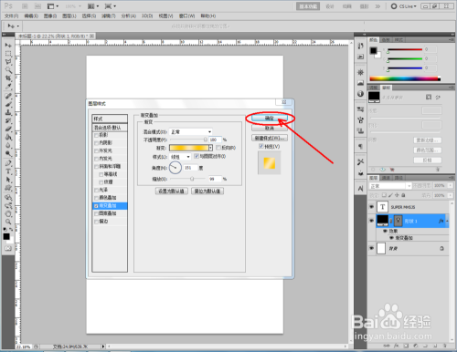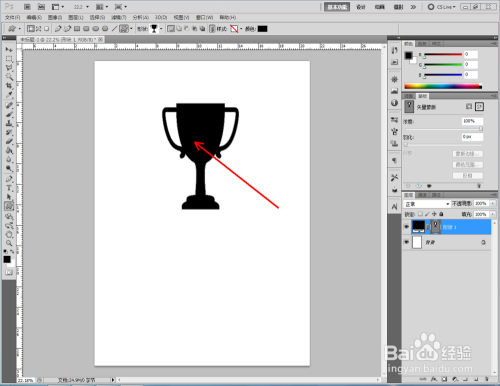 鼠标双击奖杯外形图层空白区域,弹出图层样式设置栏,勾选【渐变叠加】,按图示将渐变颜色设置为金色渐变后,点击【确定】,将奖杯图案设置为为金色(如图所示);