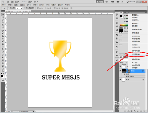 鼠标右键点击奖杯图层空白处-【拷贝图层样式】后,鼠标右键点击文字图层空白处-【粘贴图层样式】,给文字图层也附上同样的图层样式,这样我们的奖杯图案就全数建造完当作了。