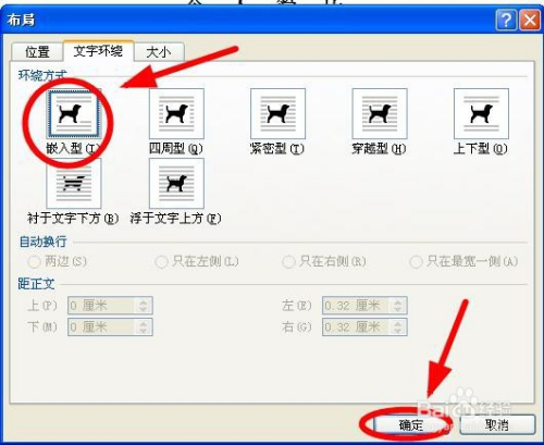 在“结构”对话框中,选择“大小”选项卡,勾选“锁定纵横比”和“相对原始图片大小”两项;在“文字环抱”选项卡,选中“嵌入型”后,单击“确定”