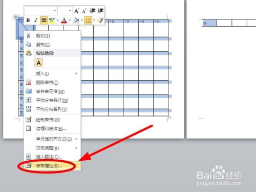 在右键菜单中选择“表格属性”单击