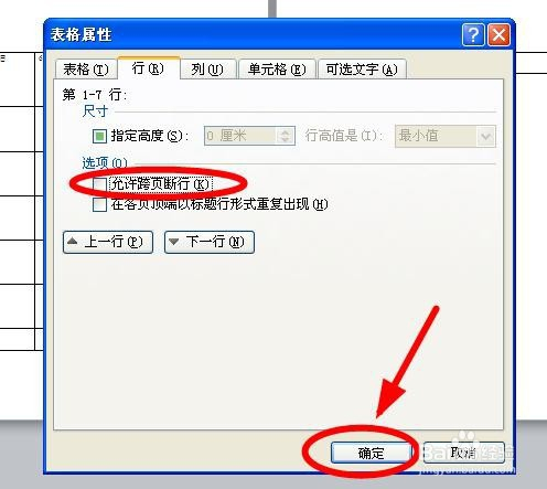 在弹出的“表格属性”对话框中,选择“行”选项卡单击