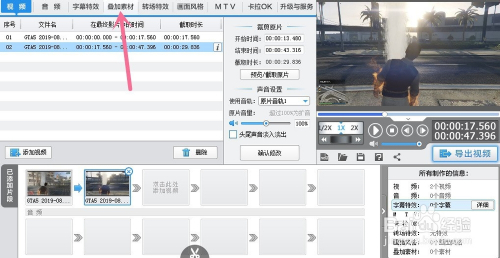 当作功添加视频就打开正上方菜单里的叠加素材。