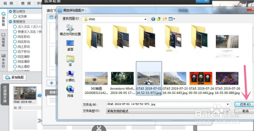 在文件夹里找出你需要添加到视频中的照片,再点击打开。