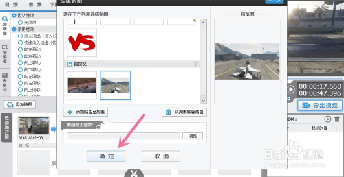 这里再次点击添加视频,进去后打开适才的视频,将视频起头时候上设置为14秒(按照图片逗留时候提前几秒);视频竣事时候就按照视频最终时候而决议,最后点击确定。