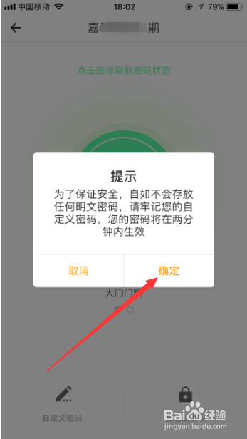门锁密码点窜之前,会弹出一个确认框,我们点击“确定”即可,如图所示。