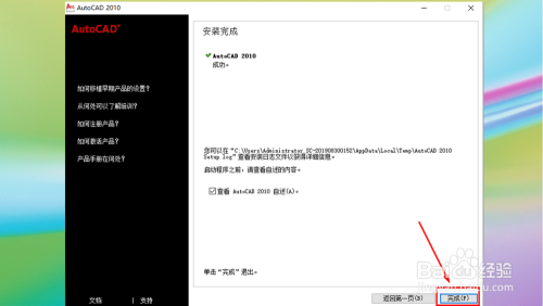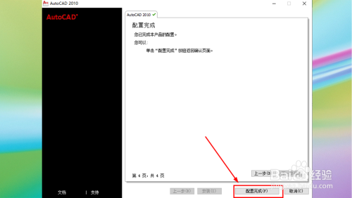 激活当作功,点击【完当作】回到CAD2010启动界面。